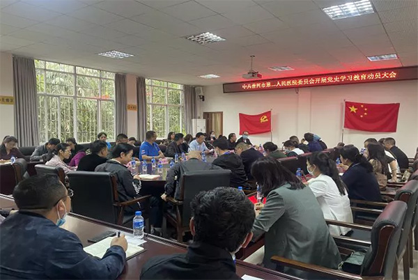 3月22日下午,普洱市第二人民医院召开党史学习教育动员大会,会议由党委副书记、院长雷启学主持,党委书记李学明作动员部署讲话。院党政领导班子成员;纪委委员,各党支部书记、副书记;职能科室、内设职能科室和业务科室正职、副职;工、青、妇、老体协正职、副职共60余人参加会议。