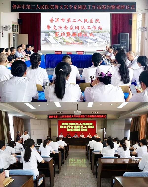 6月4日-5日,普洱市第二人民医院院长雷启学、纪委书记孙章文率领鲁文兴专家团队分别到镇沅县人民医院和景东县人民医院举行工作站揭牌仪式。相关县人民政府、卫生健康局领导参加揭牌仪式。