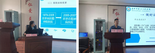 医院院领导、部分职能科室负责人、业务科室负责人为此次岗前培训的授课人,培训的主要内容有:医院建设发展、医院文化、职业教育、思想政治教育、纪律建设、人事管理及考勤、职工请休假管理规定、预防和控制医院感染的知识、核心医疗制度与病历书写规范、护理核心制度及相关法律法规、高警示药品管理及使用、医患关系和医德医风等。