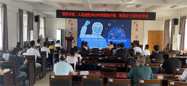为全面加强院内疫情防控管理,有效提高医院工作人员个人防护水平,降低新型冠状病毒肺炎传播风险,切实做好常态化疫情防控工作。普洱市第二人民医院感染管理科、科教科于4月22日对穿脱防护服、隔离衣师资队伍进行了专项的培训考核。