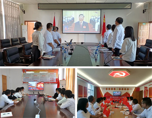 医院党政领导班子、各党支部党员统一着装、佩戴党徽,集中收听收看,并认真做好学习笔记,各科室医务人员组织休养员一同收听收看。大家纷纷表示,报告鼓舞人心、催人奋进。