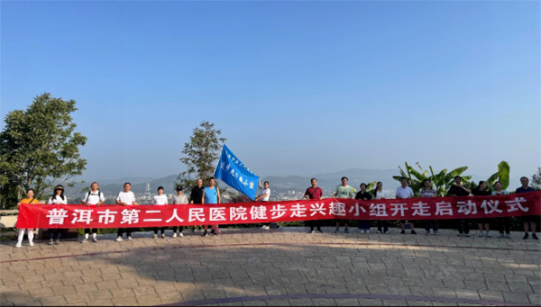 为营造健康积极的文化氛围,倡导绿色健康的低碳生活,鼓励职工每天参与健身,推动全民健身活动蓬勃开展。5月20日上午,普洱市第二人民医院健步走兴趣小组举行了开走启动仪式,院党委书记李学明首先传达了院领导班子对健步走活动的支持,并宣布了健步走活动正式开始。