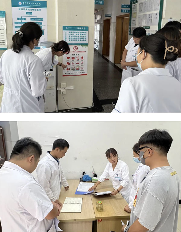 为进一步促进工作的开展,会后,罗丽华副院长带领各责任科室成员至院内门诊楼、营养食堂、医疗废物暂存处进行实地检查。总的来看,各部门高度重视,工作扎实,效果显著,但还存在一些细微问题,如下水管道脱落,医疗废物登记本不合规范等。要求,各部门在一周内落实整改完毕,次月将严格督查整改情况,要不折不扣把问题改彻底、改到位。